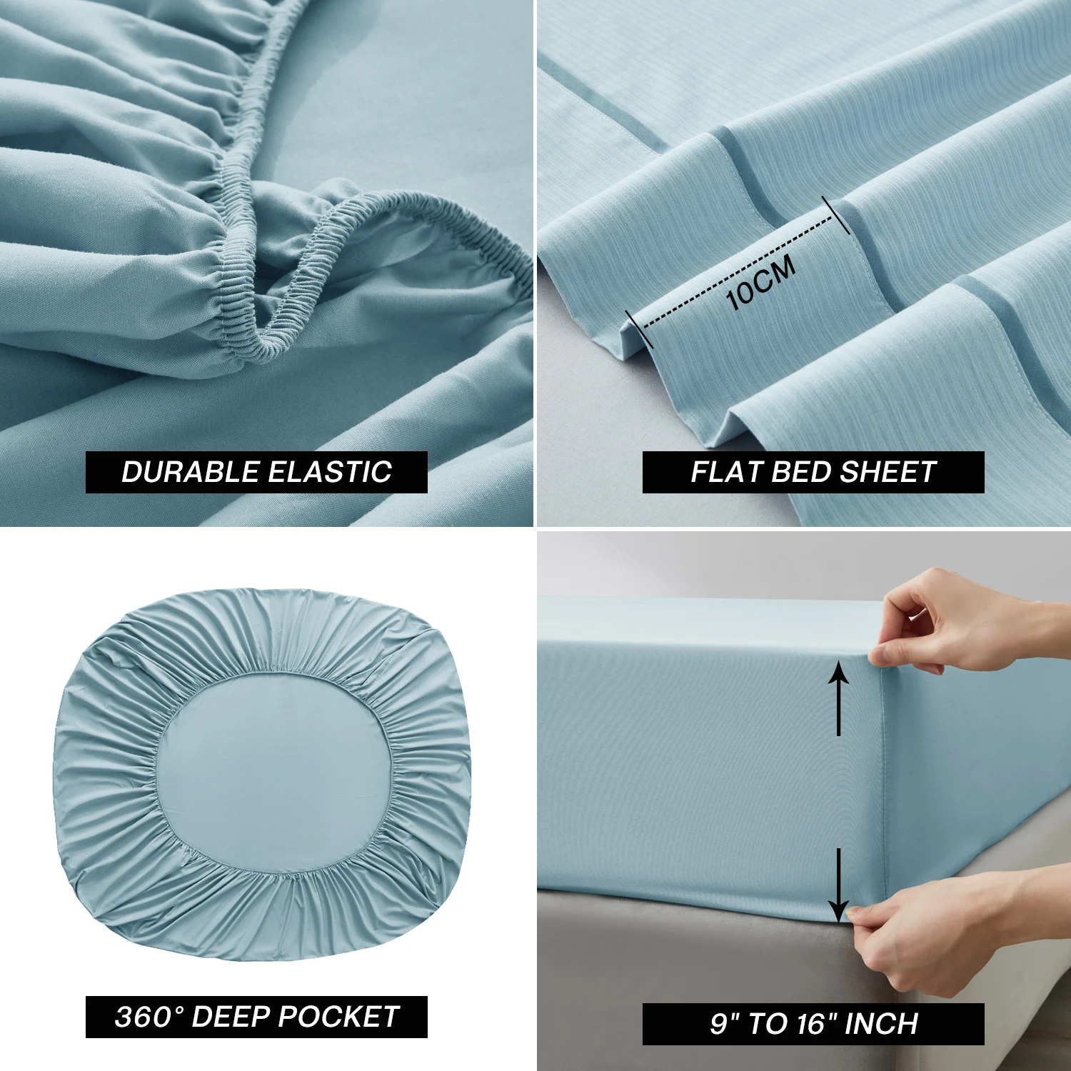 Microfiber Woven 4-Piece Bed Sheet Set 100% Polyester Solid Pattern Air-permeable All-Season Home Bedding